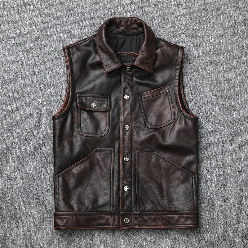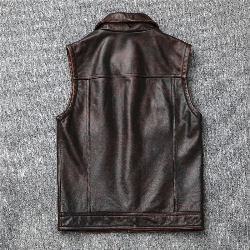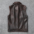 Men's Genuine Leather Dark Brown Vintage Cowhide Motorcycle Vest