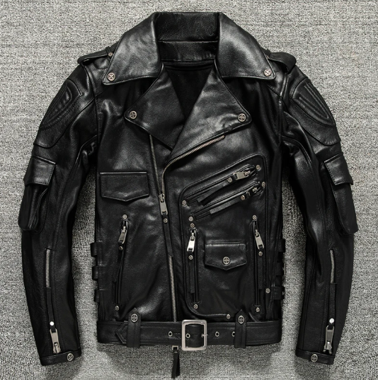 Men's Genuine Leather Motorcycle Style Autumn Jacket: Cowhide Leather