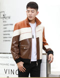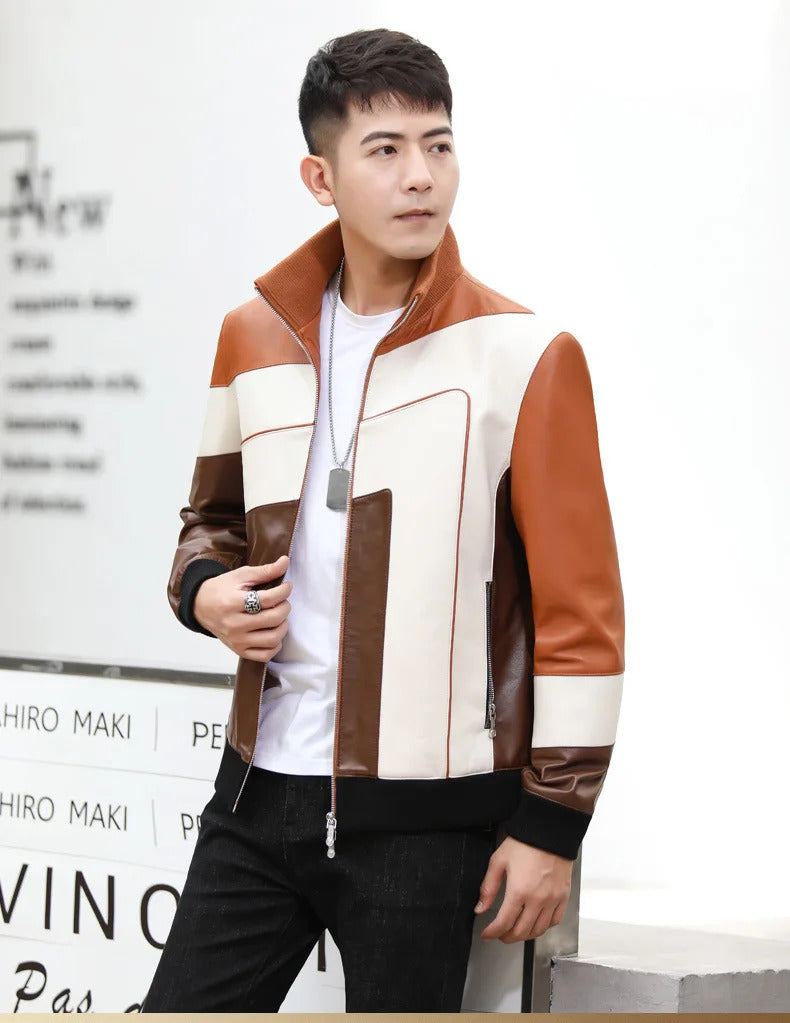 Men's Genuine Sheepskin Leather Motorcycle Jacket with Stand-Up Collar