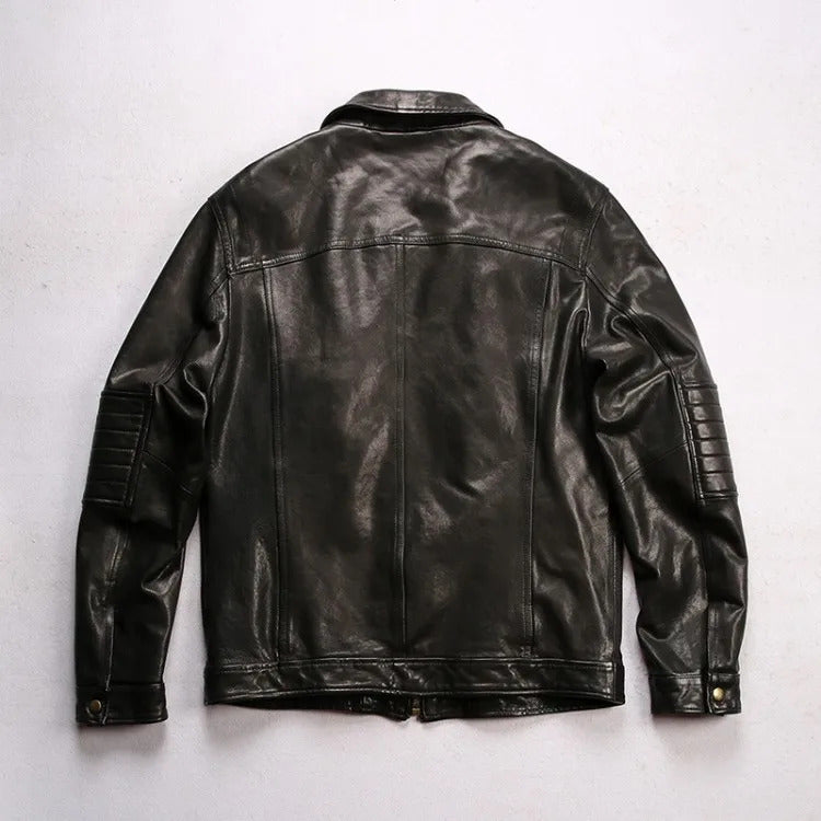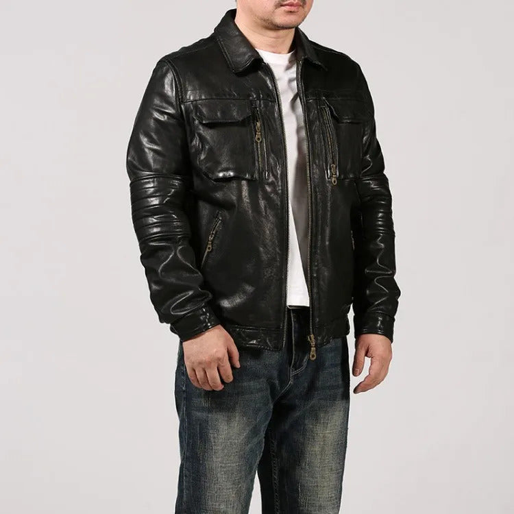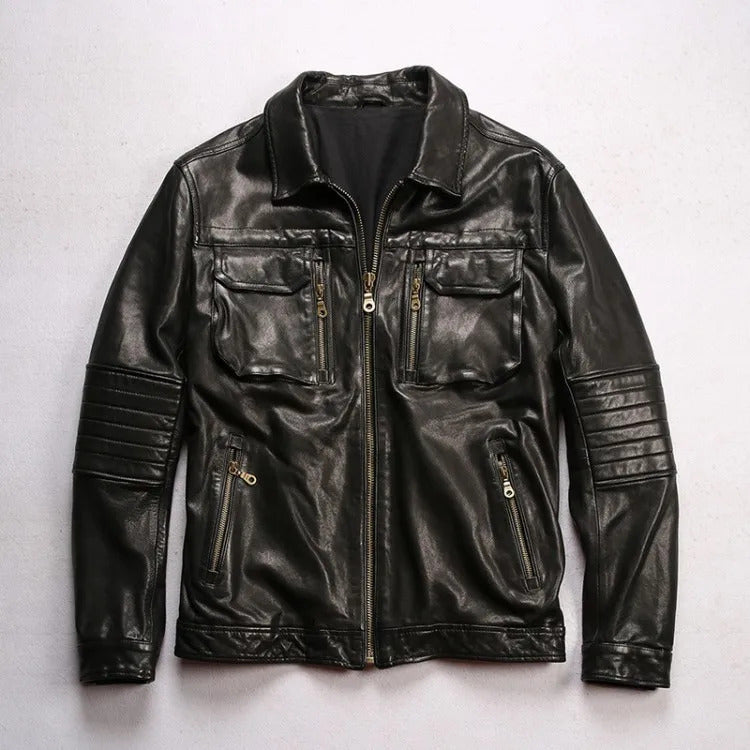 Men's Genuine Sheepskin Leather Multi-Pocket Moto Biker Jacket