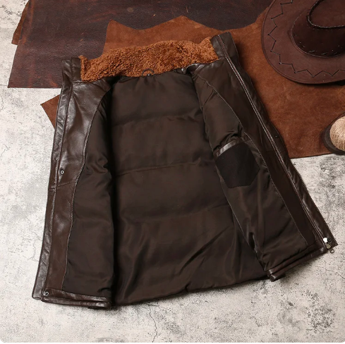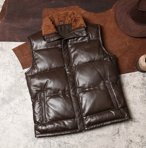 Men's Genuine Sheepskin Leather Winter Vest Jacket