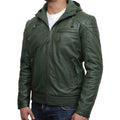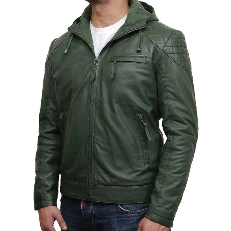 Men's Green Hooded Biker Leather Jacket