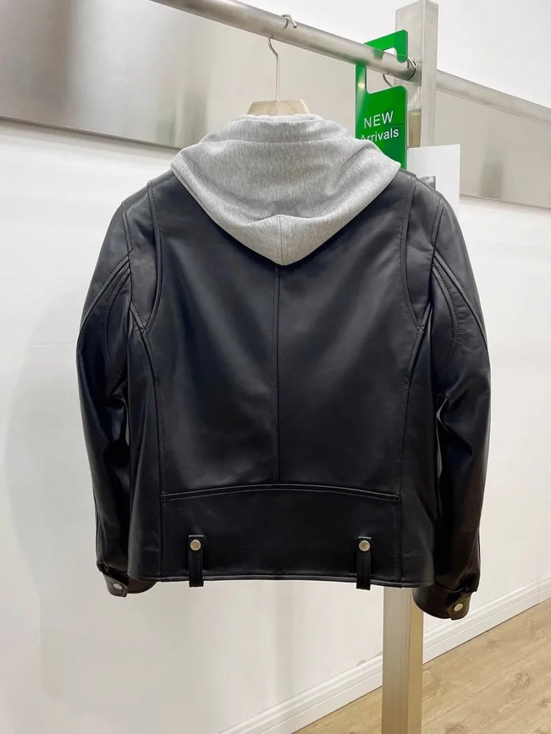 Men's Hooded Genuine Sheepskin Leather Jacket