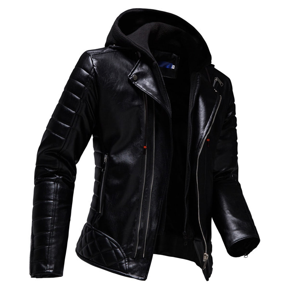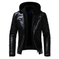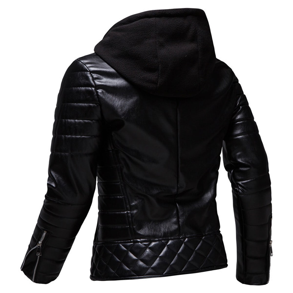 Black Biker Genuine Sheepskin Lapel Collar Hooded Motorcycle Rider Crossover Retro Quilted Asymmetric Leather Jacket