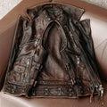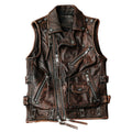 Men’s Biker Vintage Brown Genuine Cowhide Western Slim Fit Leather Zipper Waistcoat