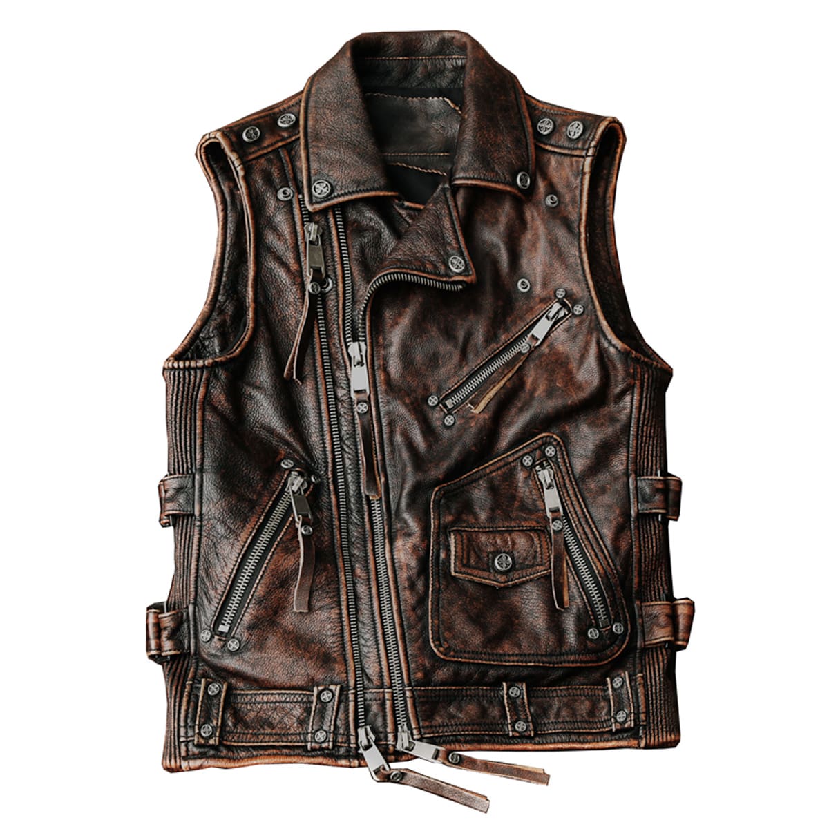 Upgrade your style with our Mens Leather Jacket Zipper - Biker Vintage Brown Genuine Cowhide Western Slim Fit Leather Zipper Waistcoat. Crafted from premium cowhide leather, this waistcoat effortlessly blends vintage charm with modern sophistication.