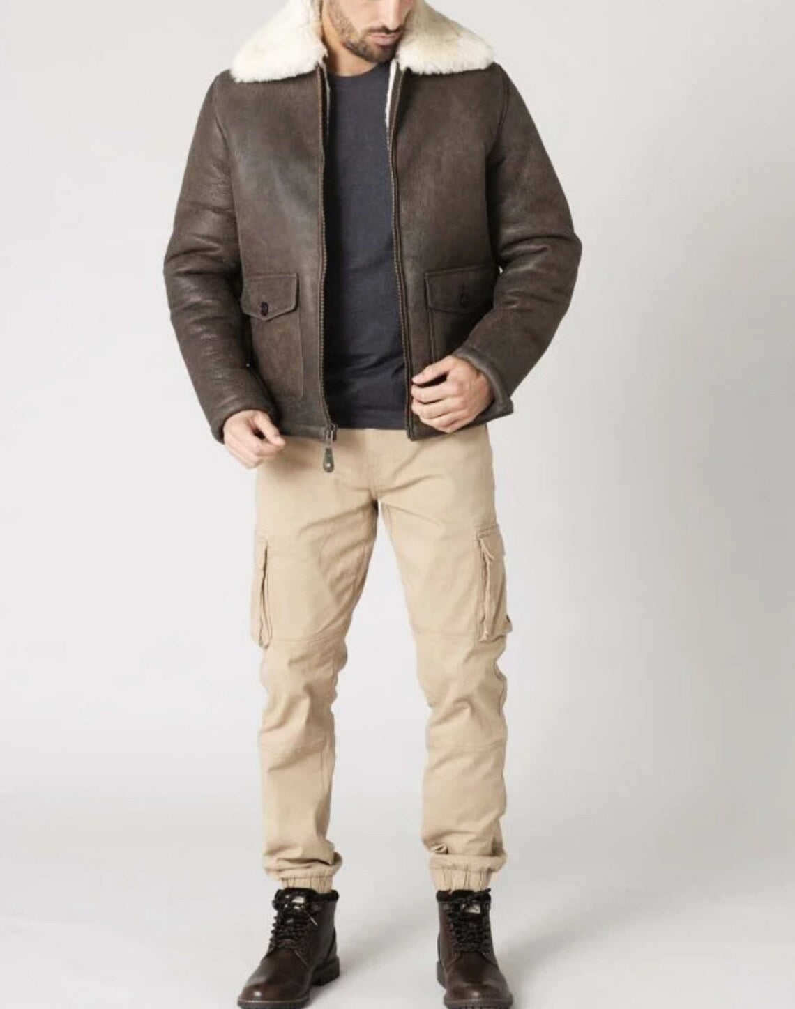 Elevate your winter style with the Men's B3 Style Real Fur Classic Leather Jackets For Mens. This English (US) leather jacket combines fashion and warmth, featuring genuine leather, sheepskin, and shearling for a cozy and stylish winter experience.