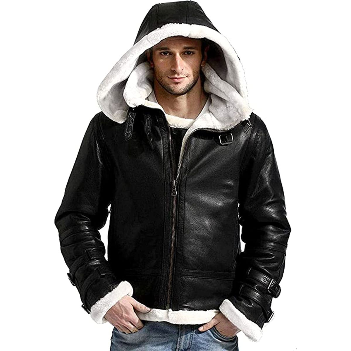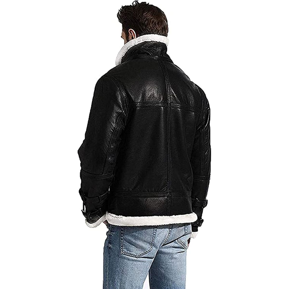 Mens’s Winter B3 WW2 Aviator Fighter Pilots Raf Bomber White Fur Black Leather Jacket