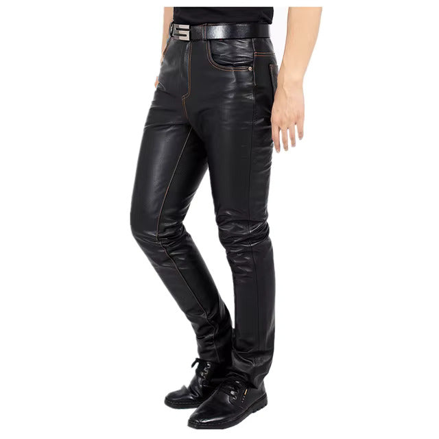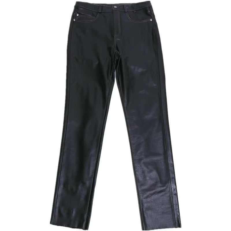 Men's Slim Fit Genuine Leather Pants - Elongated Straight First Layer Leather