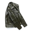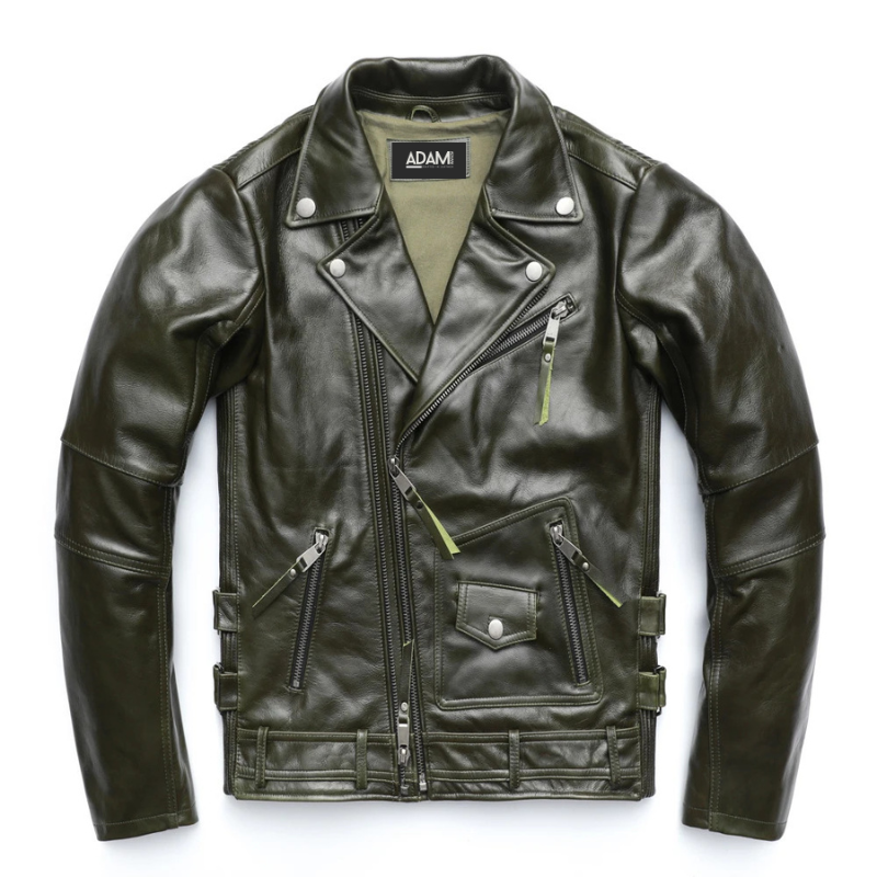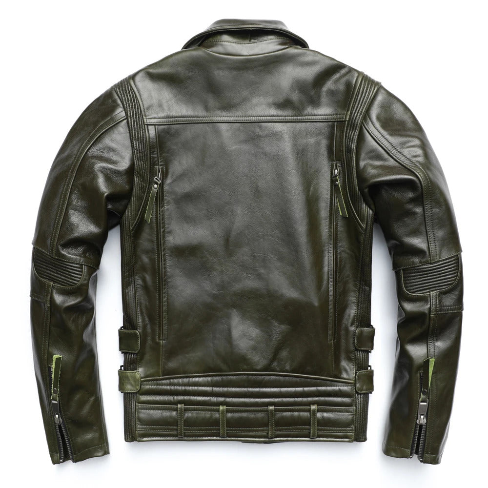 Men's Unique Army Green Motorcycle Jacket - 100% Oil Wax Cowhide Leather Biker Jacket