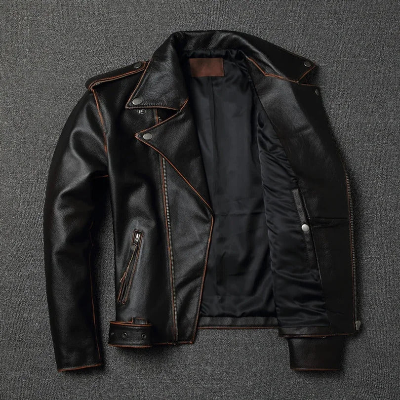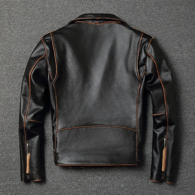 Men's Vintage Cowhide Leather Motorcycle Jacket - Classic Biker Fashion