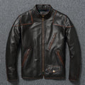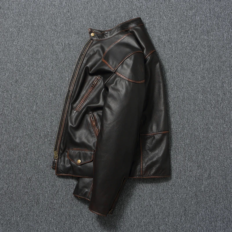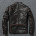 Men's Vintage Cowhide Leather Motorcycle Jacket - Retro Standing Collar Design