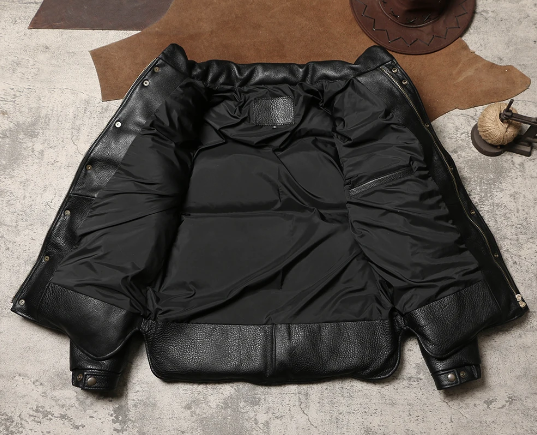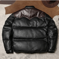 Men's Vintage Leather Down Bread Jacket: Warm Cowhide & Duck Down Outerwear