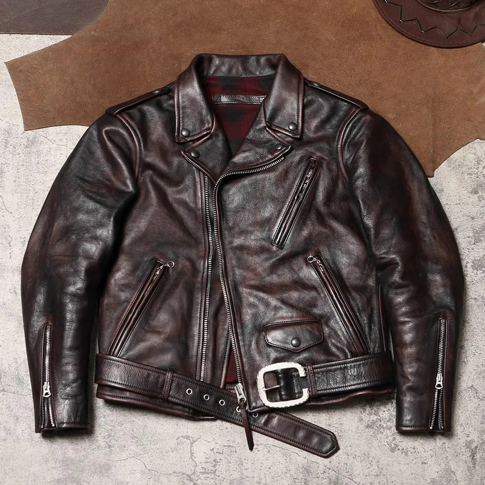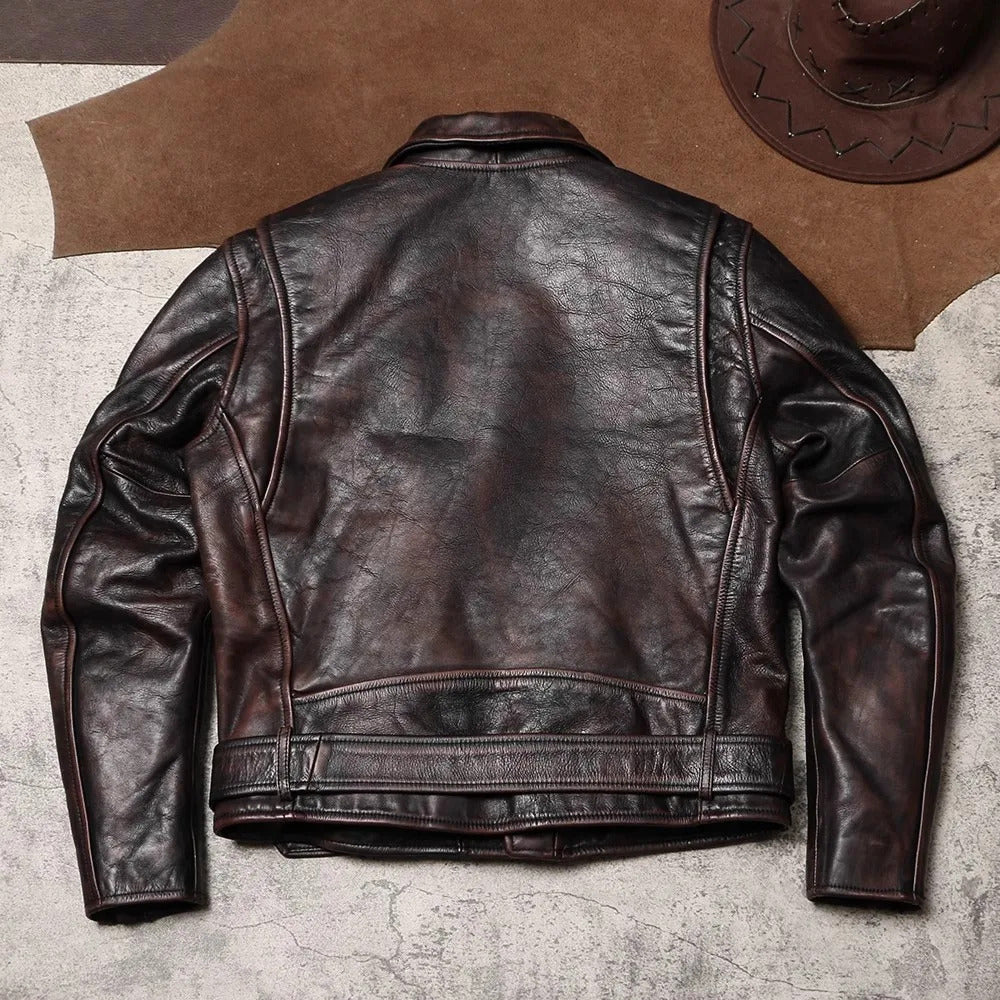 Men's Vintage Style Cowhide Leather Motorcycle Jacket - Premium Quality