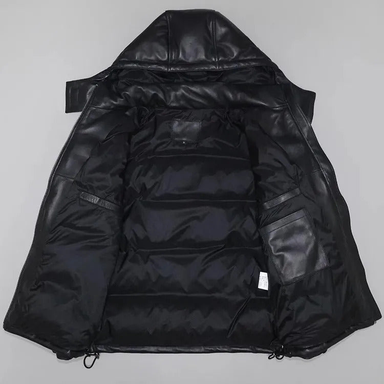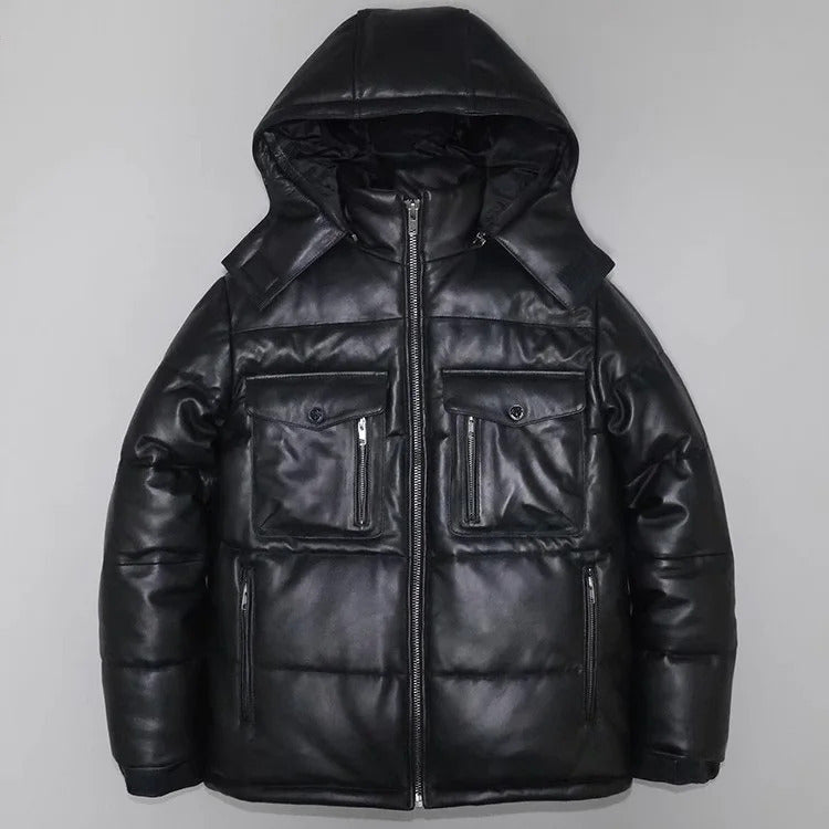Men's Warm Winter Duck Down Sheepskin Leather Jacket
