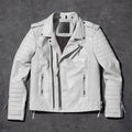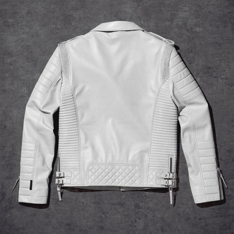 Men's White Biker Leather Jacket - Motorcycle Style White Leather Jacket
