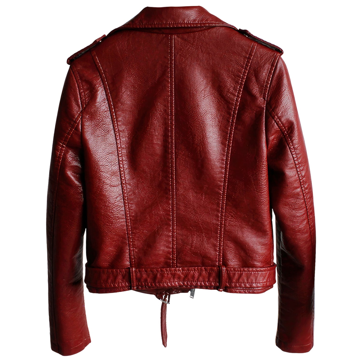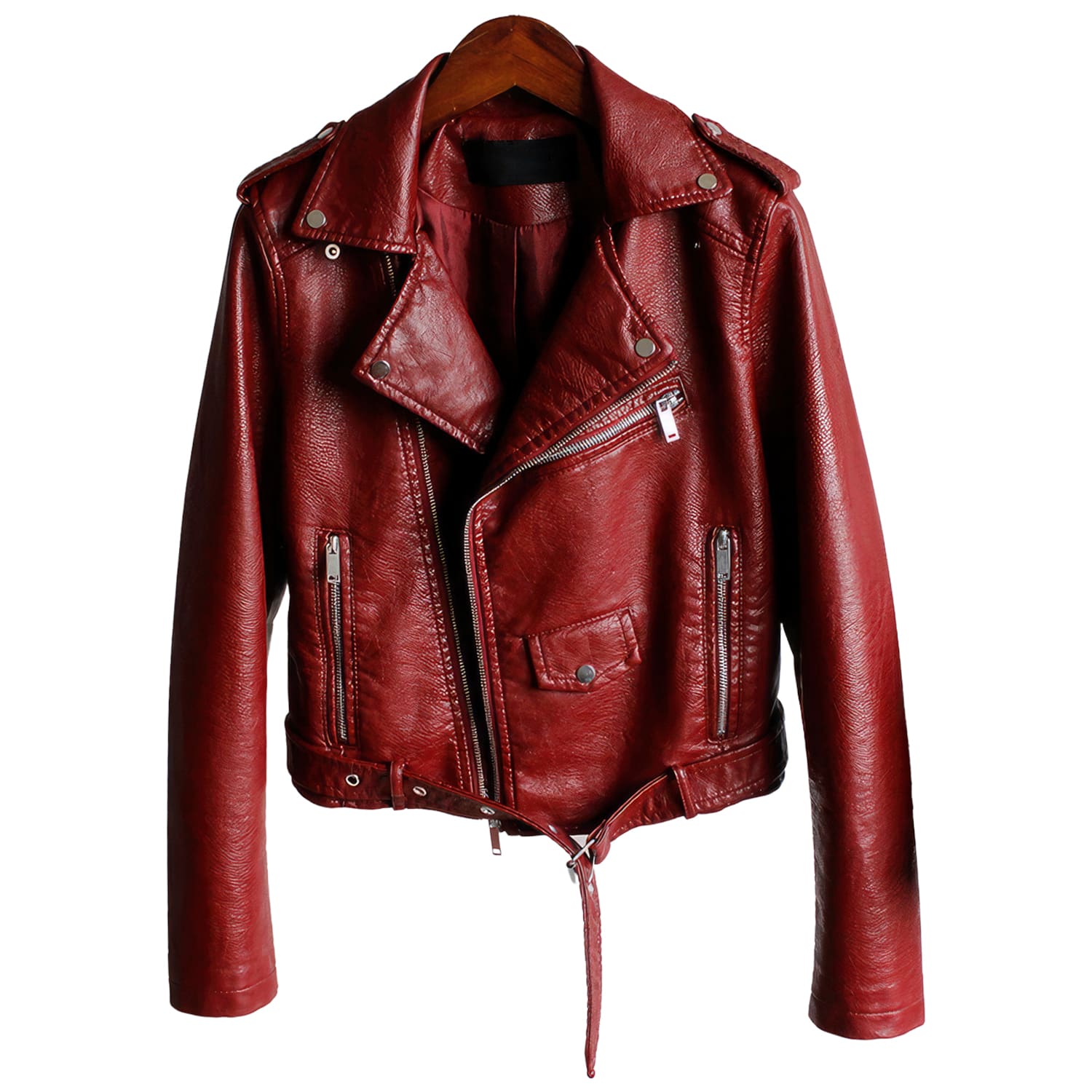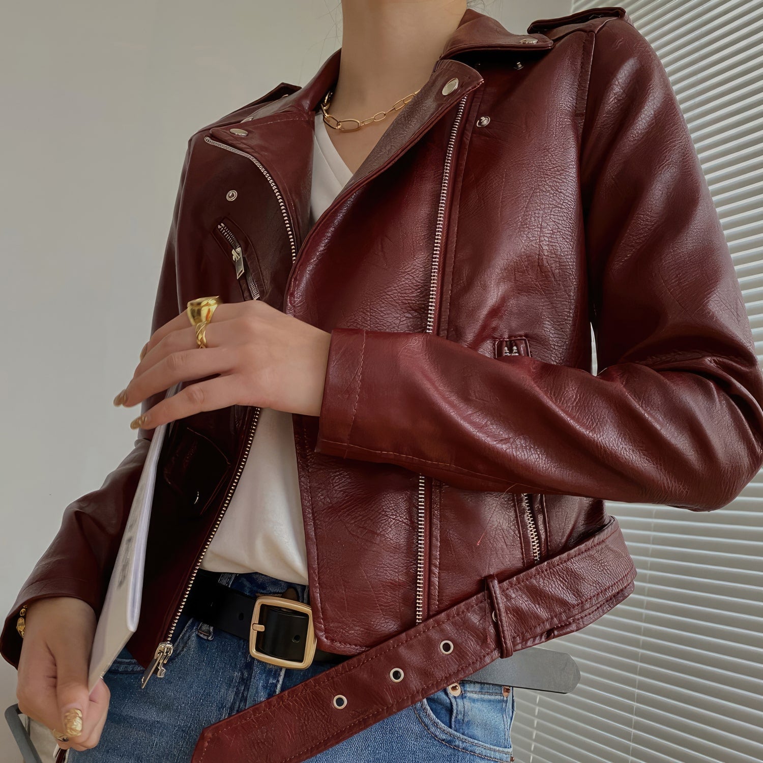 Women's Red Sheepskin Biker Jacket: Café Racer Style, Slim Fit