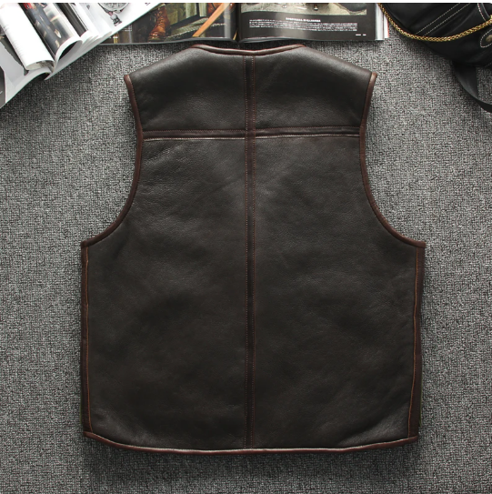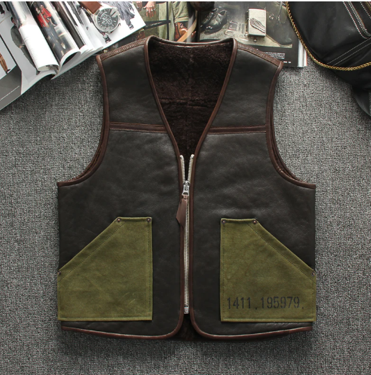 Sheepskin Genuine Leather Men's Vest: B3 Style with Wool Lining