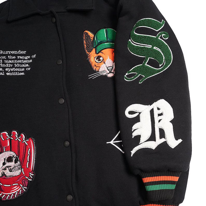 Street Life Baseball Jacket: Sporty Black Style with Unique Design