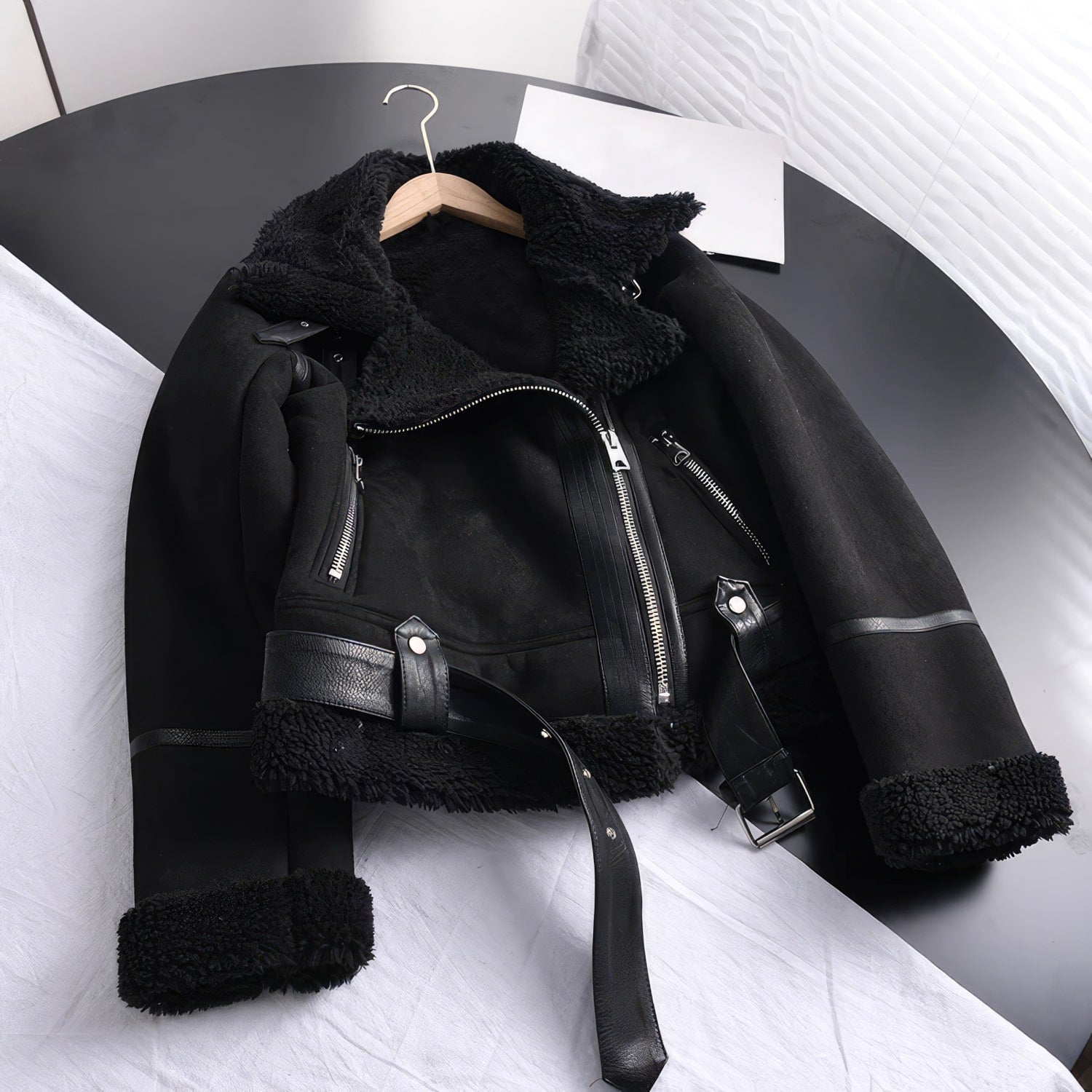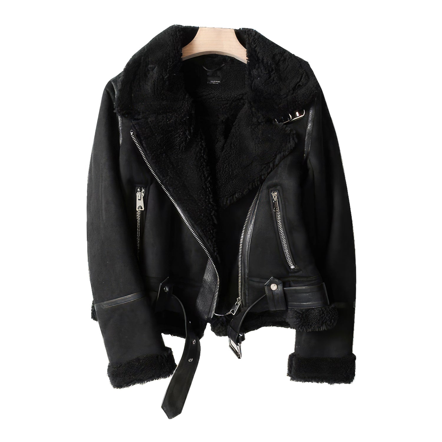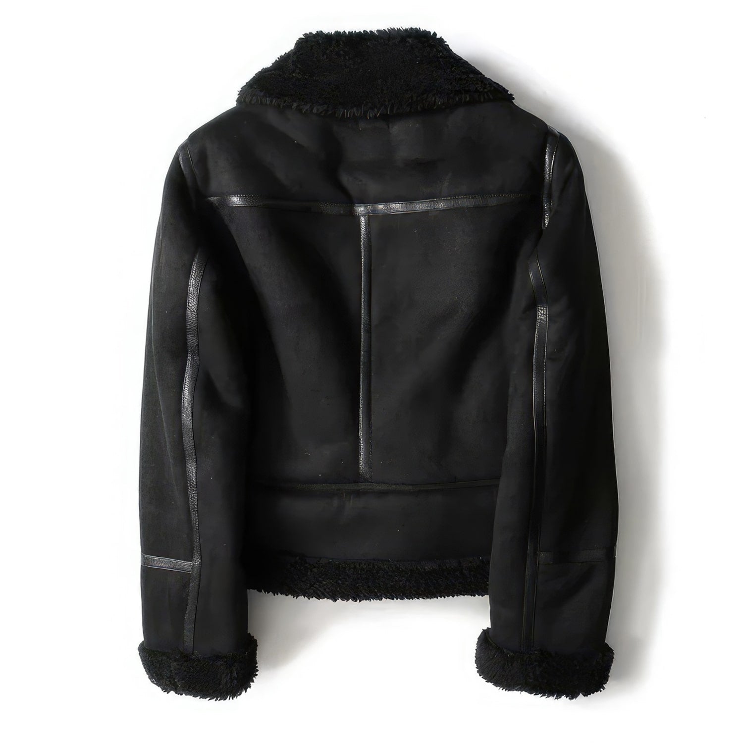 Timeless Women's Vintage Black Suede Lambskin Shearling Moto Biker Jacket