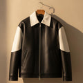 Two-Tone Men’s Cowhide Leather Jacket – Moto Style Outerwear