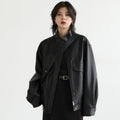 Step into the world of Streetwear fashion with this Women’s Black Biker Genuine Sheepskin Leather Jacket. Made from premium quality sheepskin, the jacket ensures longevity with a luxury touch. Its unique drop shoulder design, paired with a stand collar, brings a modern touch to the traditional biker jacket. An elastic waist bottom ensures a snug, flattering fit while a YKK zip and button closure keep your jacket secure. Perfect for a casual, oversized streetwear look, this jacket effortlessly blends comfort and style for your everyday needs.