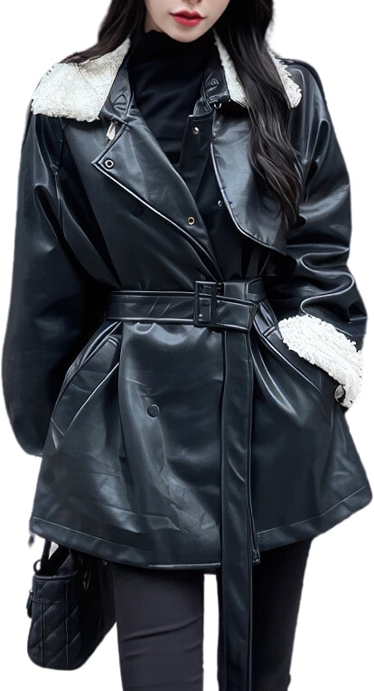 Stay stylishly warm in our Women’s Black Genuine Lambskin Sherpa Shearling Faux Fur Collar Casual Oversized Streetwear Leather Trench Coat. Crafted from high-quality sheepskin leather, this coat ensures durability while offering a luxury feel. The cozy Sherpa Shearling faux fur collar and cuffs add a layer of warmth, perfect for chillier days. The classic double-breasted button closure exudes sophistication, while the adjustable waist belt allows you to customize the fit. Designed with an oversized fit, this trench coat encapsulates the essence of trendy streetwear fashion. Perfect for those looking to combine style and comfort, this coat is an ideal addition to your wardrobe.