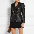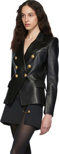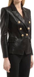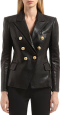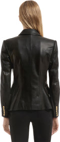 Make a style statement in the office with our Women's Black Genuine Sheepskin Leather Blazer. Crafted from high-quality sheepskin leather, this blazer promises durability and comfort. Its notched collar design adds a touch of modernity to this classic piece, while the button closure ensures a secure and snug fit. Designed with utility pockets, this blazer combines practicality with style. The coat's business formal design makes it an ideal choice for any corporate setting, ensuring you always look professional and sophisticated. Its smooth finish and elegant fashion aesthetics further enhance its appeal, making it a must-have for any working woman's wardrobe.