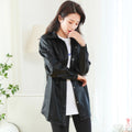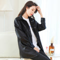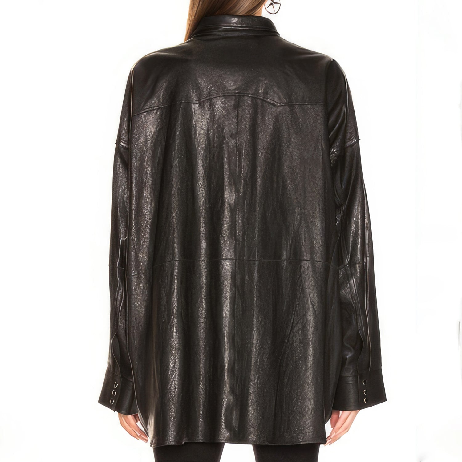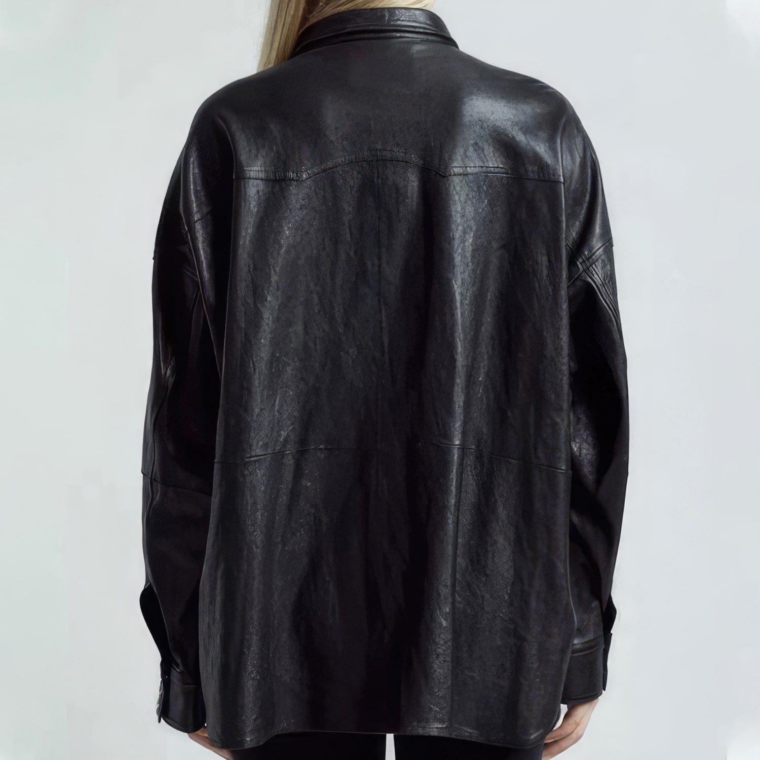 Elevate your style with this Women's Black Genuine Sheepskin Shirt Collar Cropped Fashion Classic Style Lightweight Smooth Leather Jacket. Made from high-quality genuine sheepskin, this lightweight jacket offers a luxurious feel and lasting durability. The classic shirt collar adds an elegant touch to your outfit, while the flat button closure ensures a comfortable and secure fit. Multiple storage pockets provide ample space for your essentials without compromising the jacket's sleek design. The trendy cropped length creates a modern, fashionable look that complements various outfits and occasions, making it a versatile piece suitable for your wardrobe. Enjoy the perfect combination of style and comfort with this smooth leather jacket.