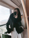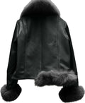 Women’s Black Genuine Sheepskin Sherpa Shearling Faux Fur Collar Elegant Korean Fashion Slim Fit Winter Warm Leather Jacket