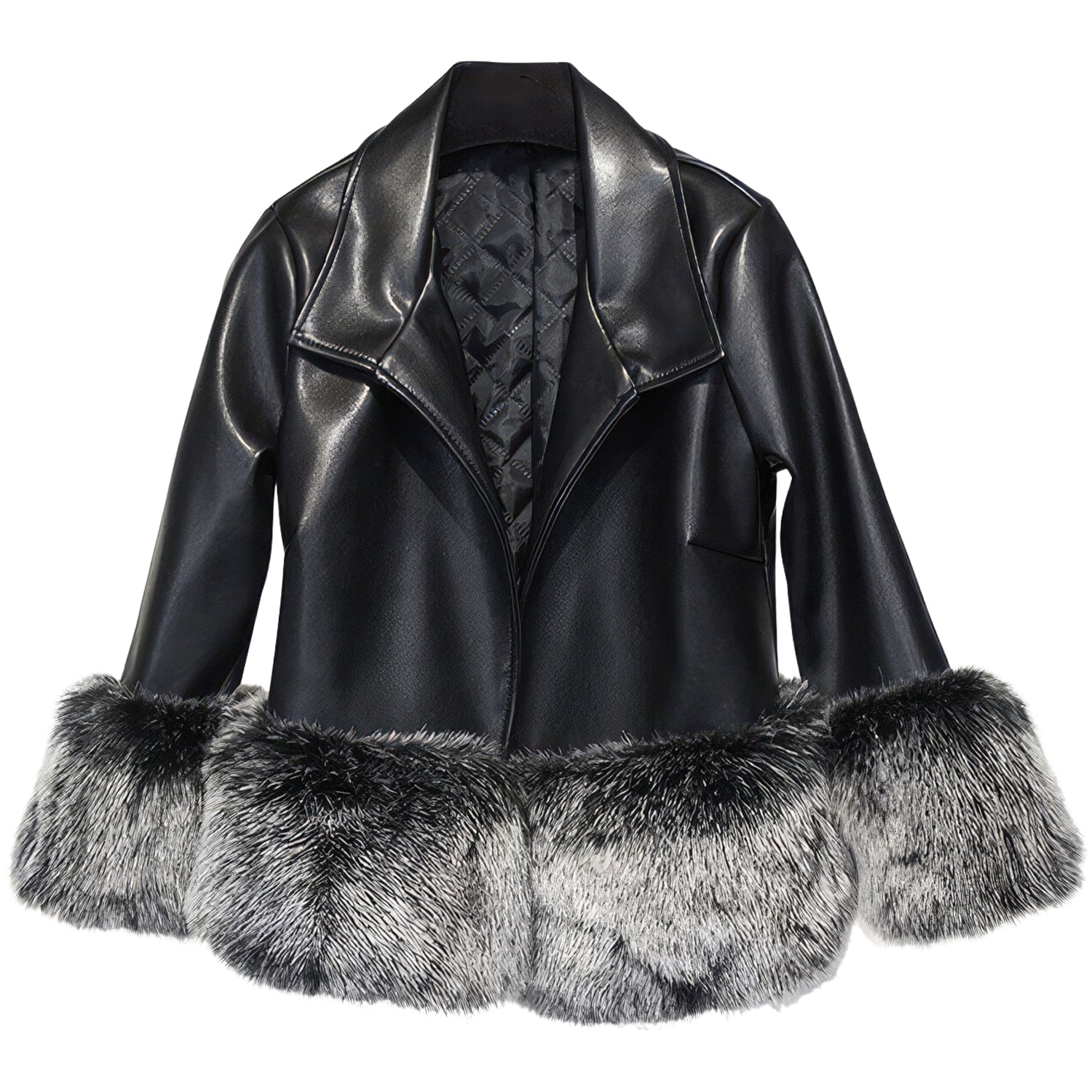 Women’s Black Genuine Sheepskin Sherpa Shearling Faux Fur Cuffs Fashionable Casual Classic Winter Warm Slim Fit Leather Jacket