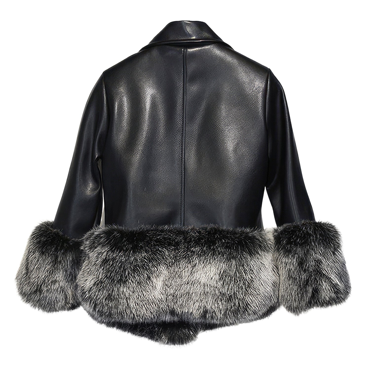 Embrace the winter season in style with our Women’s Black Genuine Sheepskin Leather Jacket. Crafted from superior quality sheepskin, this slim fit jacket combines durability with a luxurious feel. The standout feature is the Grey faux fur cuffs and bottom hem, adding a touch of opulence and warmth to this fashionable piece. Its classic shirt collar design enhances its overall chic and casual look. For convenience, the jacket features a secure snap button closure. A perfect blend of style and comfort, this jacket is a must-have addition to your winter wardrobe.