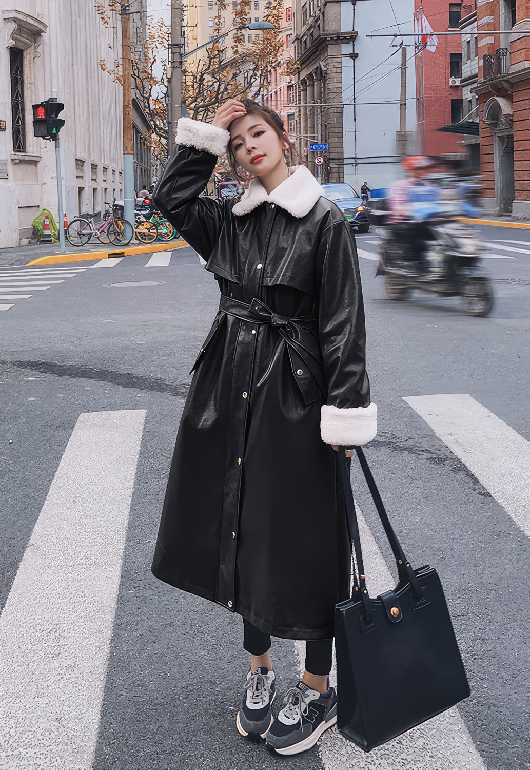 Dive into a blend of luxury and Korean fashion with our genuine sheepskin leather coat. Designed for the modern woman, it showcases an intricate sherpa shearling faux fur lining, ensuring you're enveloped in warmth and comfort. With its elegant shirt collar, signature single-breasted button closure, and waist belt, it resonates with a sophisticated flair. The knee-length silhouette not only offers optimal warmth but also serves as a fashionable statement piece for winter. Whether attending a formal event or simply stepping out on a cold day, this coat is the quintessential wardrobe piece you never knew you needed.