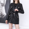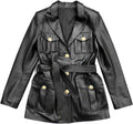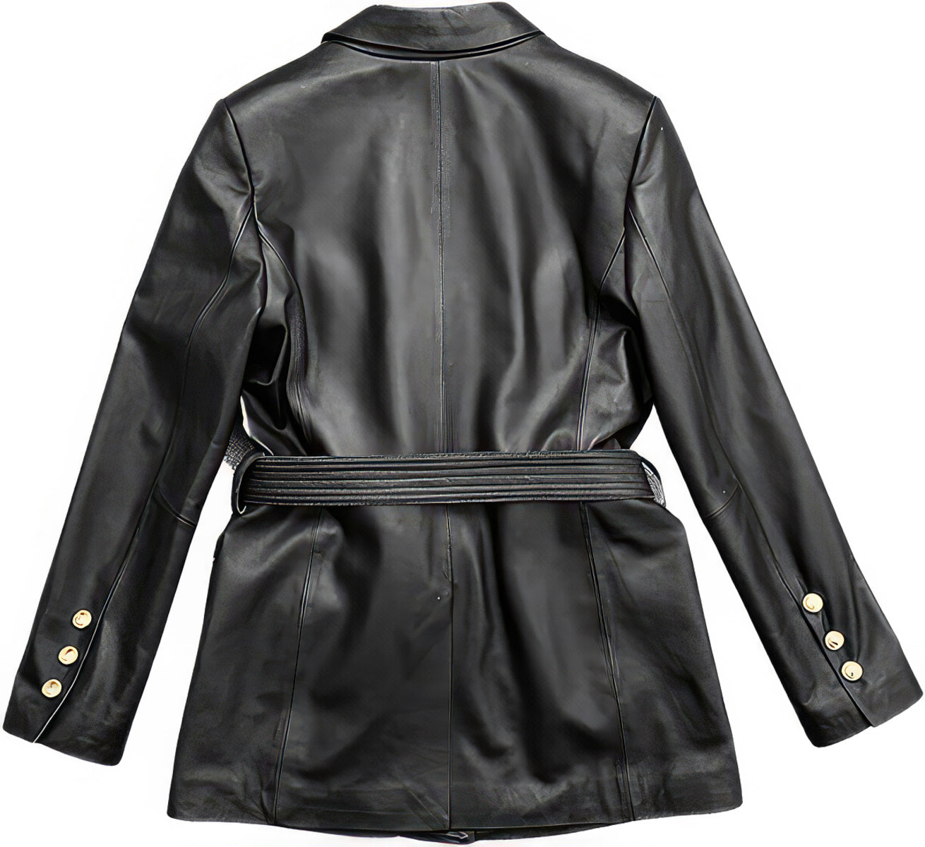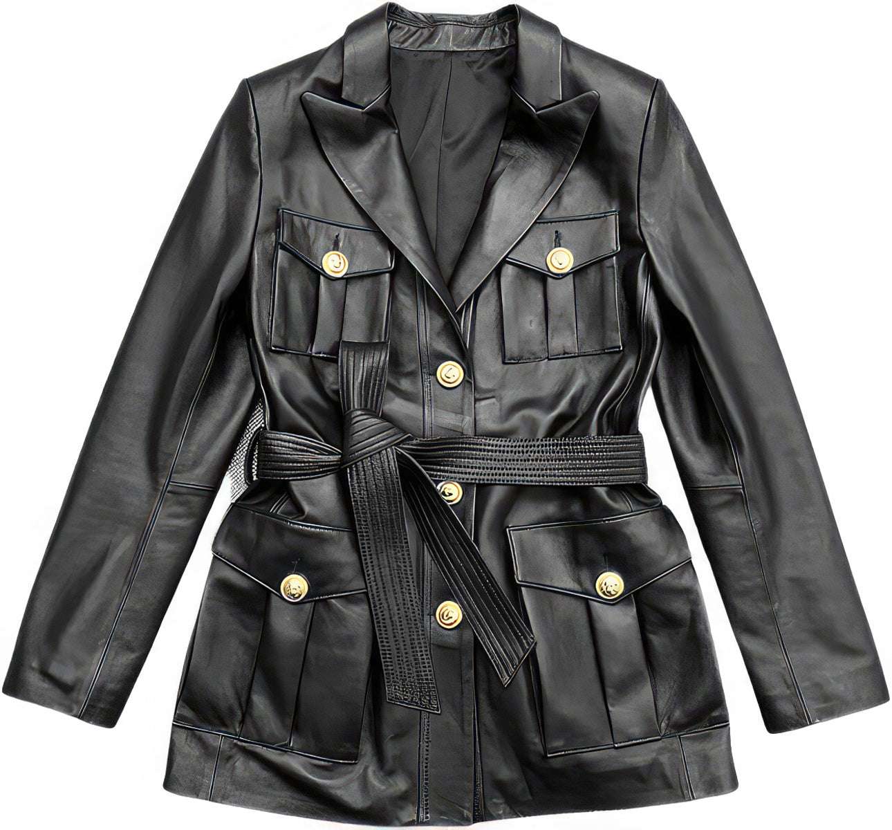 Women’s Black Genuine Sheepskin Single Breasted Casual Multi-Pockets Fashion Motorcycle Belted Leather Jacket