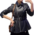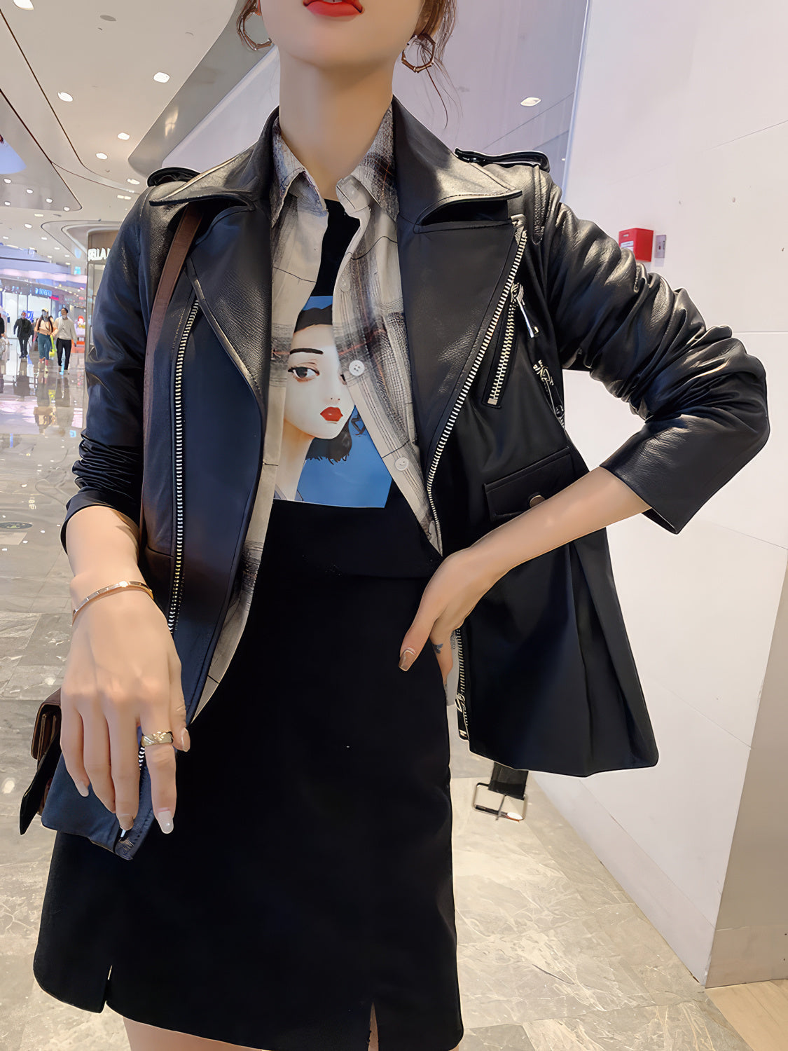 Step into winter with the epitome of elegance and style with our Women’s Black Genuine Sheepskin Leather Jacket. Meticulously crafted, this piece resonates with the luxury of genuine sheepskin, ensuring warmth and comfort during chilly days. The distinctive suit collar elevates the jacket’s design, bridging the gap between classic corporate style and daring biker edge. Its asymmetric crossover YKK zip, coupled with a waist belt, ensures a flattering fit and a unique fashion statement. Multiple pockets cater to practical needs, while the pleated Korean-inspired design showcases a harmonious blend of East meets west. Whether you're navigating city streets or attending a winter soiree, this jacket promises to be your staple companion.