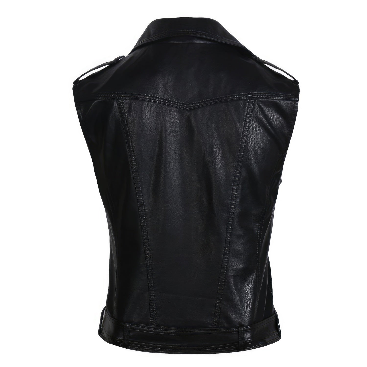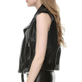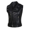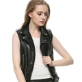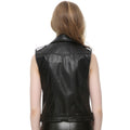 Women’s Black Rider Genuine Sheepskin Sleeveless Vest Casual Cafe Racer Fashionable Lapel Collar Leather Waistcoat