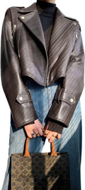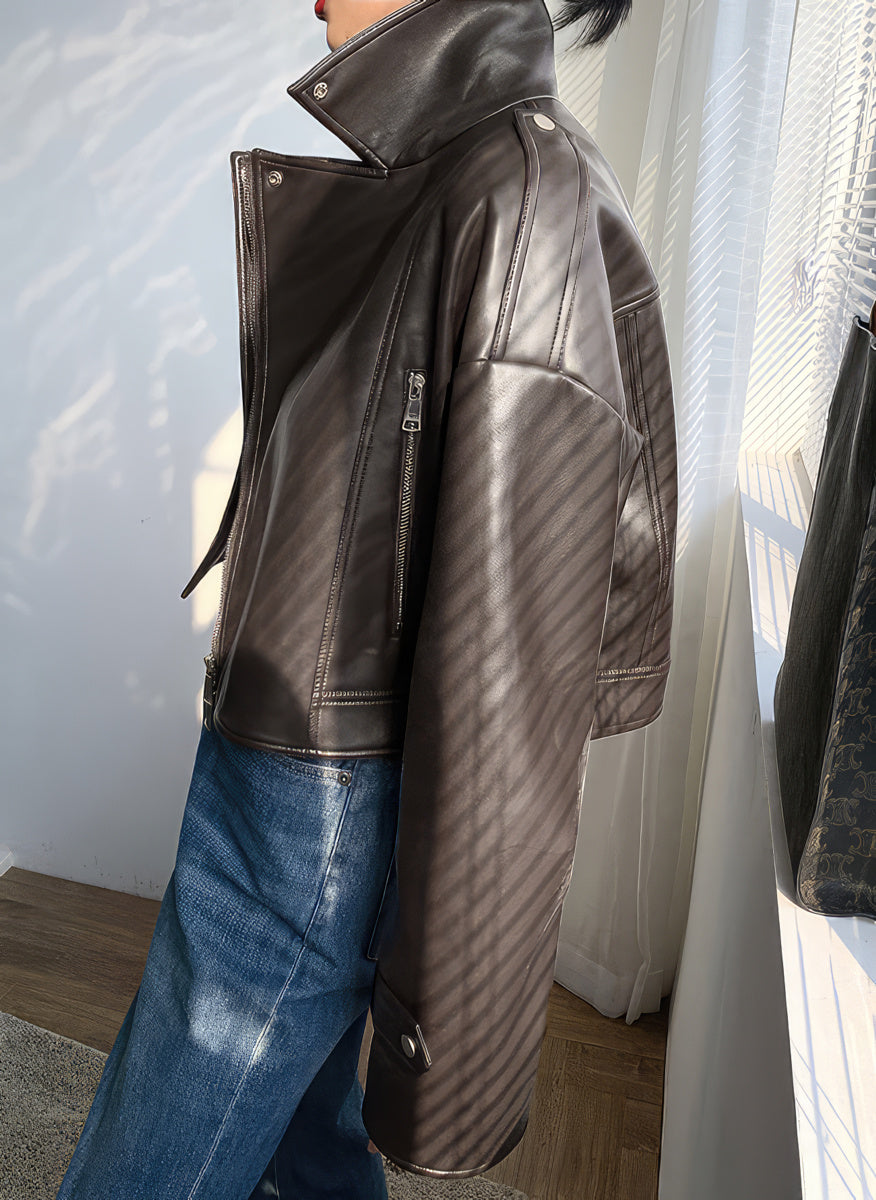Introducing the Women’s Brown Biker Genuine Sheepskin Leather Jacket, an embodiment of classic Korean style and biker fashion. Made from high-quality sheepskin leather, this jacket features a notched lapel collar, shoulder epaulets, and cuffs straps that add a fashionable edge to your outfit. The reliable YKK asymmetric zipper closure ensures secure fastening, while the short oversized design guarantees a flattering fit. This real leather jacket merges durability, comfort, and style, making it a must-have wardrobe staple. Whether you're hitting the road or heading out for a casual day, this piece ensures you do it in style. Stand out in the crowd with this timeless fashion statement.