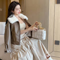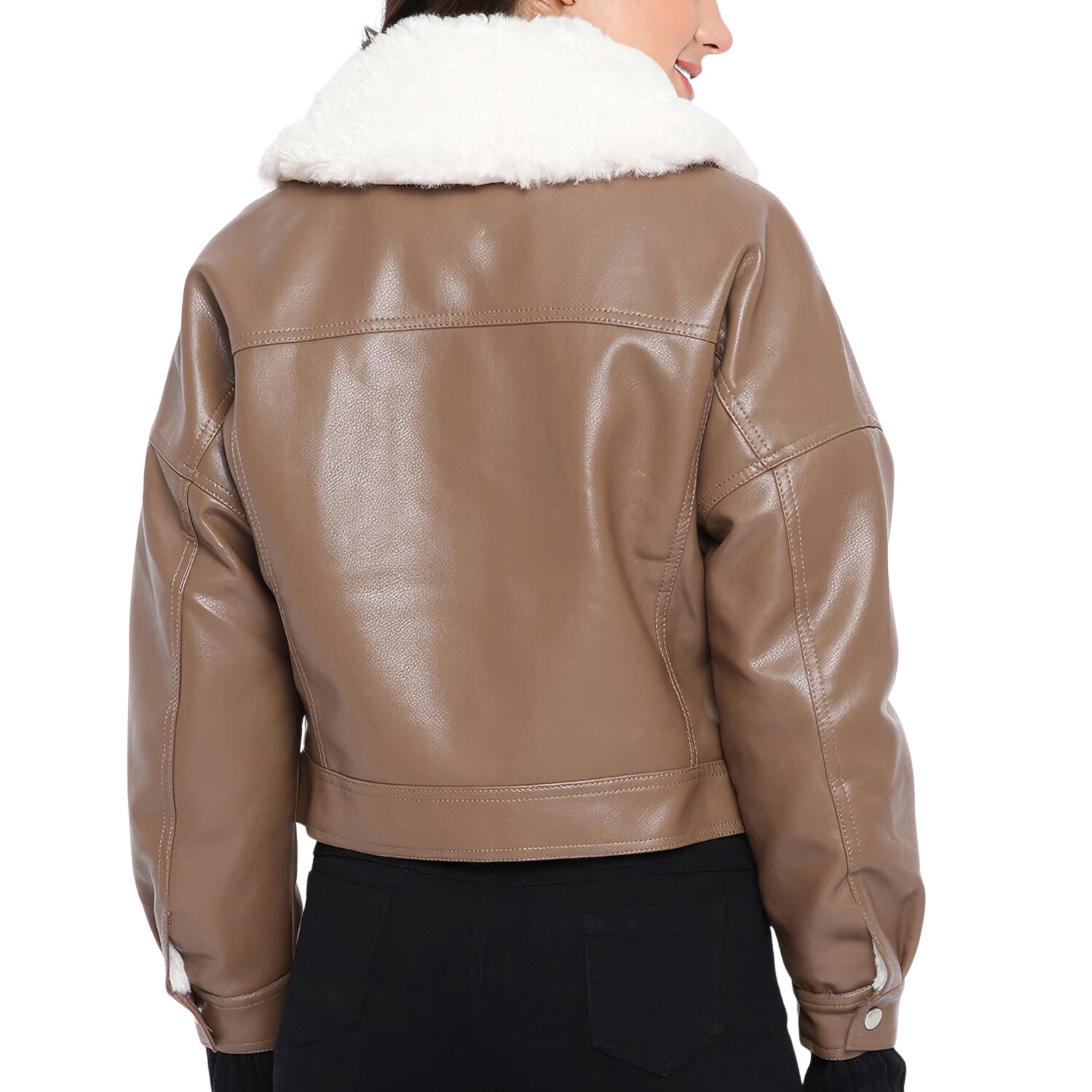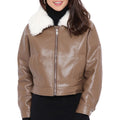Women’s Brown Genuine Sheepskin Sherpa Shearling Faux Fur Lined Korean Style Oversized Winter Warm Motorcycle Leather Jacket