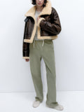 Women’s Distressed Brown Genuine Lambskin Sherpa Shearling Faux Fur Lined Moto Biker Fashion Winter Thick Bomber Leather Jacket