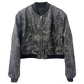 Women’s Vintage Grey Bomber Genuine Sheepskin Cropped Fashion Classic Sporty Zip-Up Outfit Short Loose Casual Smooth Leather Jacket