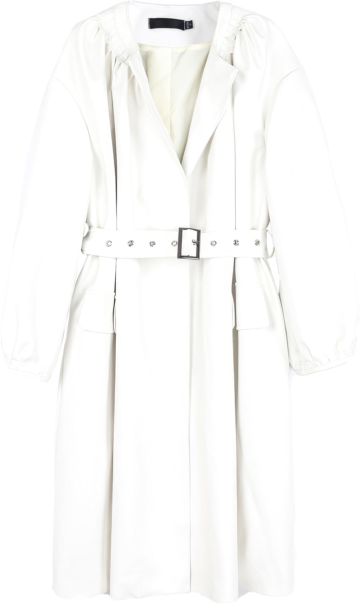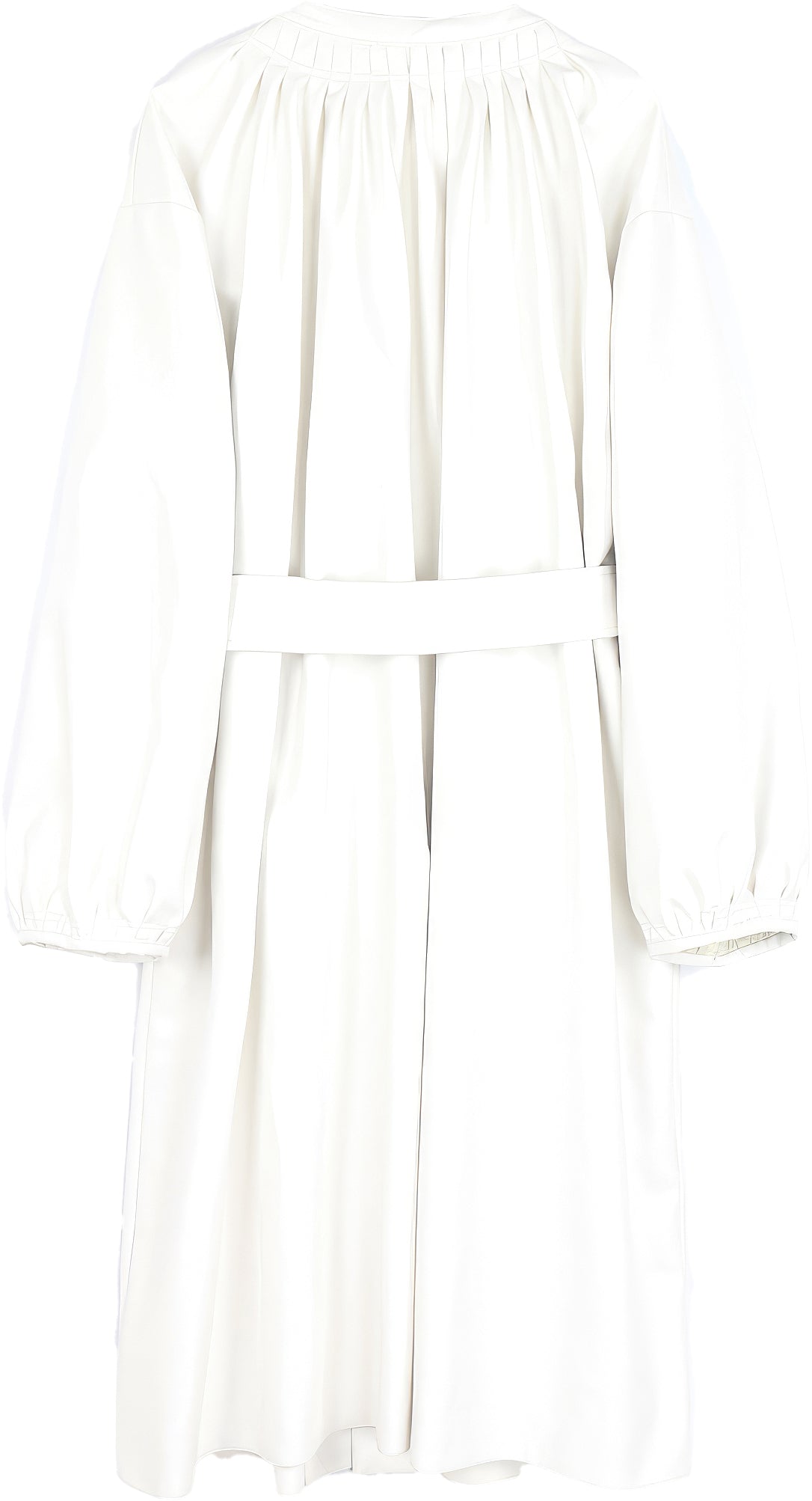 Women’s White Genuine Sheepskin Pleated Neckline Loose Luxury Casual Korean Fashion Stylish Belted Leather Coat