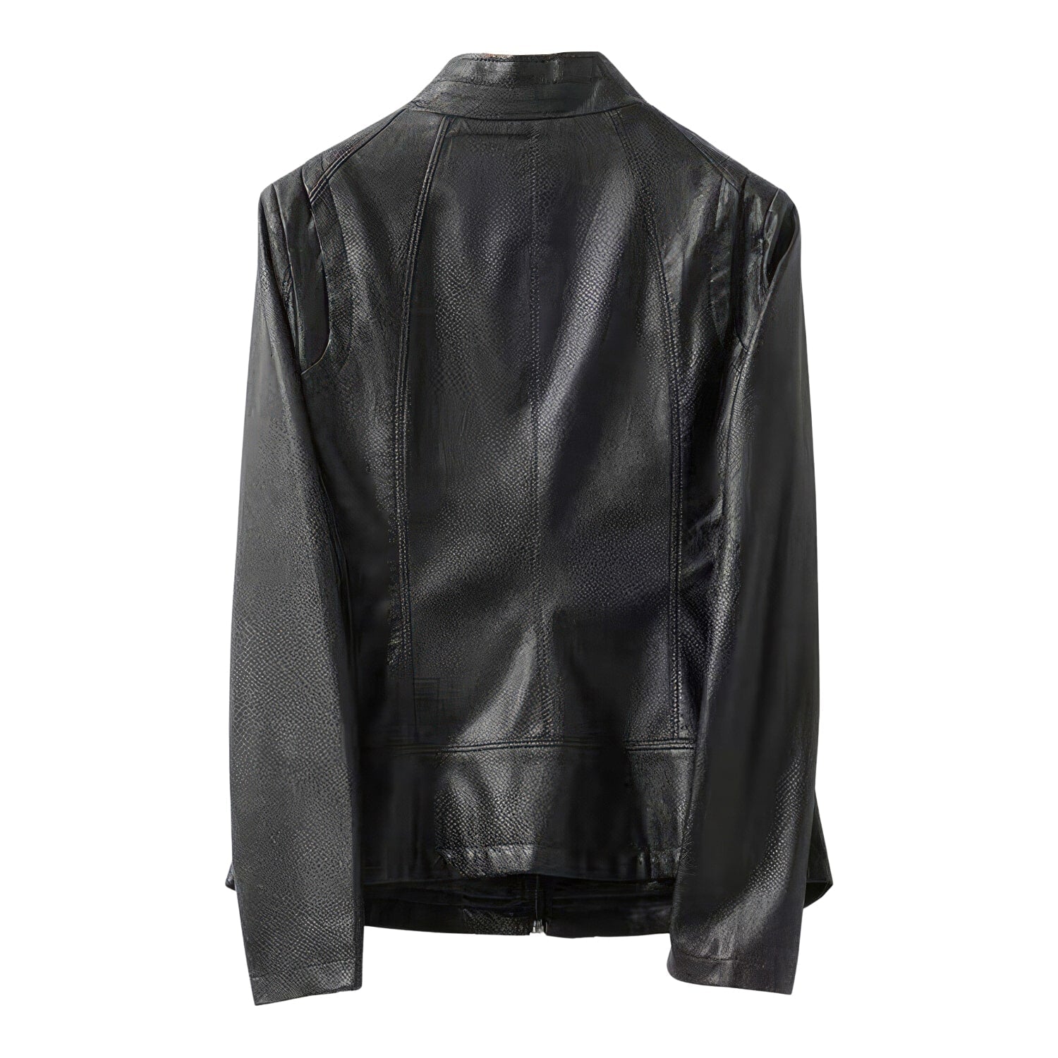 Black Rider Women's Genuine Sheepskin Leather Jacket with Stand Collar - Sporty, Slim Fit, Classic Retro Motorcycle Style