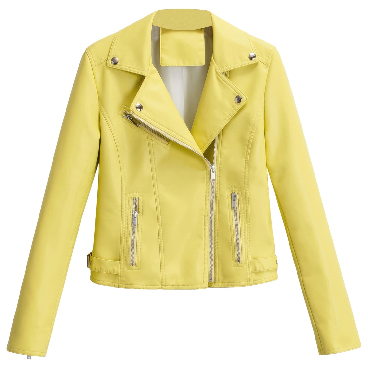 Women's Yellow Sheepskin Biker Jacket - Edgy Asymmetric Motorcycle Style